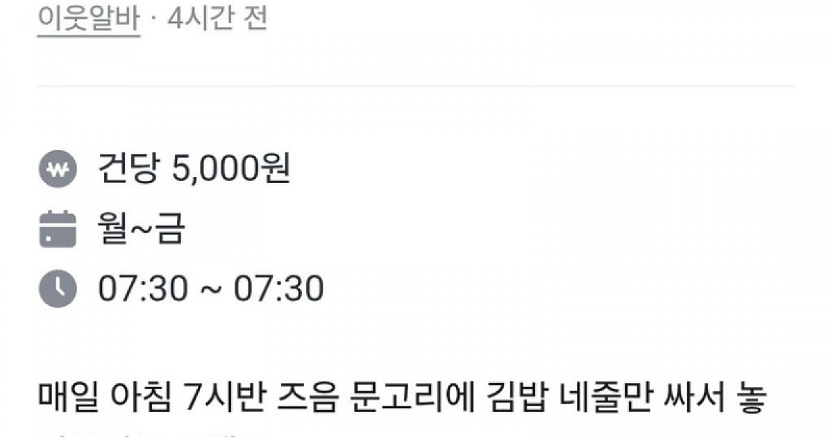 매일 아침 김밥 네줄만 싸주실 분 계신가요~