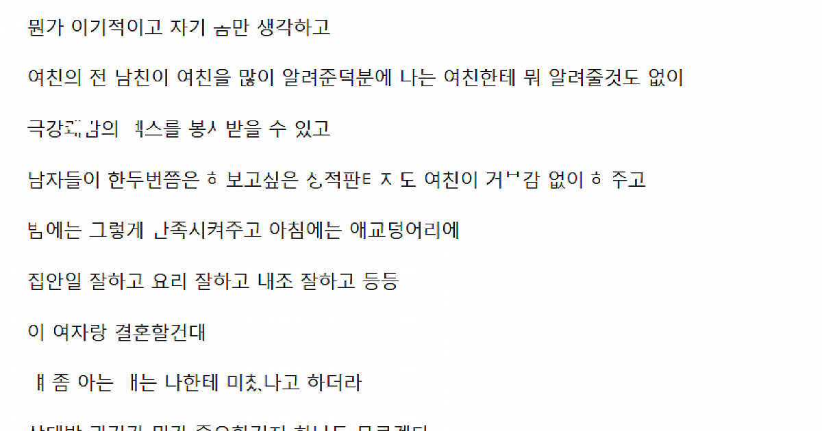 여친이 걸ㄹ였으면 어떻고 남ㅈ..r한테 몇번 ㄸ였으면 어떻고