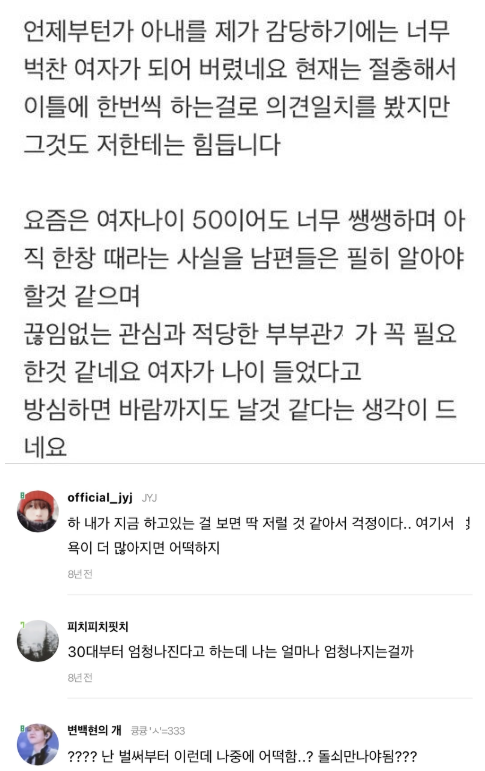50세 아내의 ㅅ욕을 감당할 수가 없어요