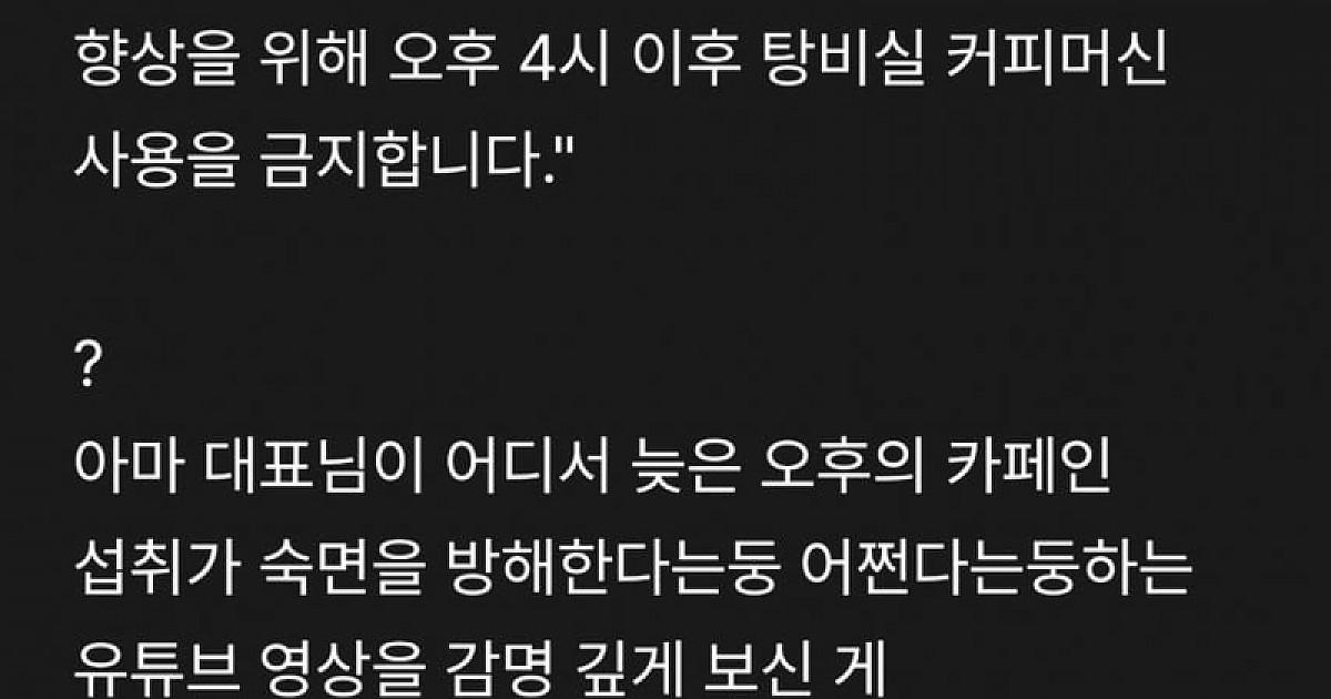 직원들 잠 안잔다고 사무실 탕비실 커피를 금지해버린 회사