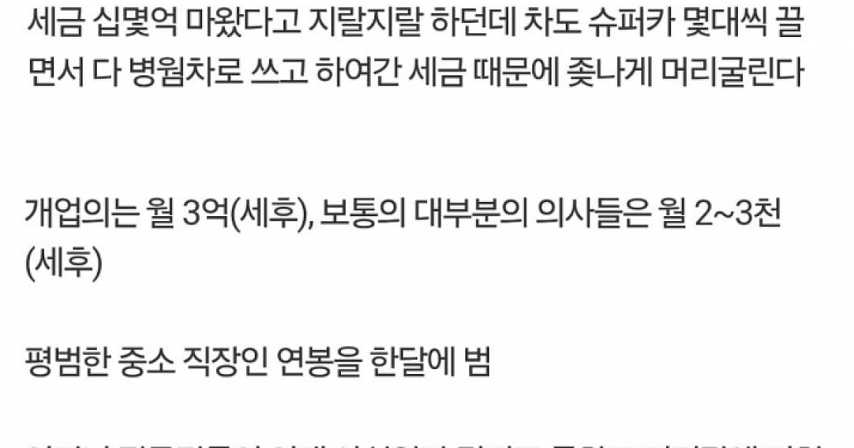 의사들 월급 수준 댓글 모음