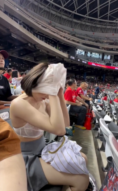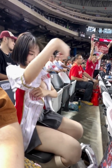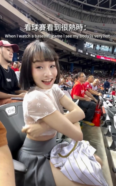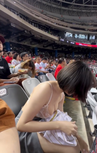 야구장에서 상의 갈아입는 누나