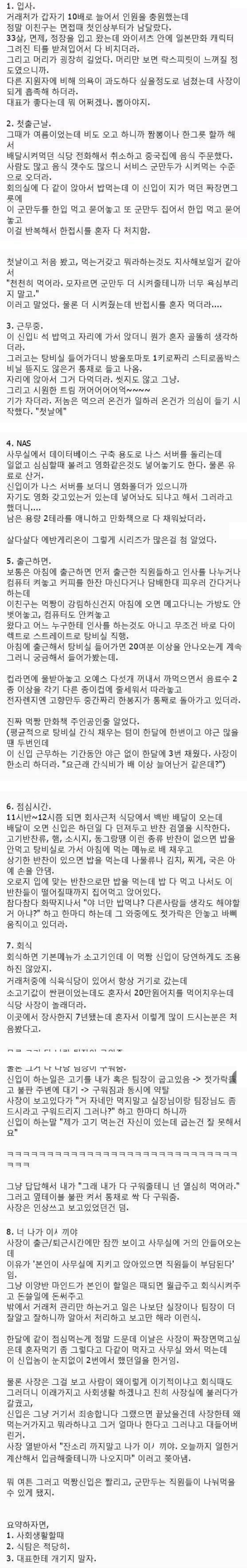 식탐 부리다가 짤린 신입사원