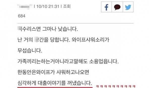 와잎한테 거의 겁ㅌ ㄷ한다는 남ㅍ