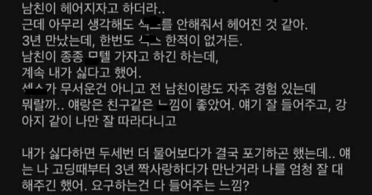 남자들 ㅅㅅ안해줘서 헤어질 수 있어?