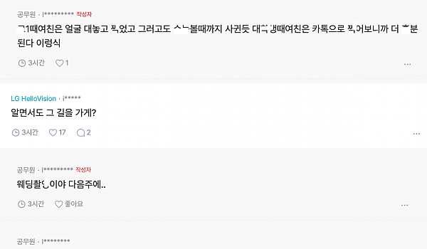 새벽에 다른 팀 여직원한테 연락 온 커뮤인