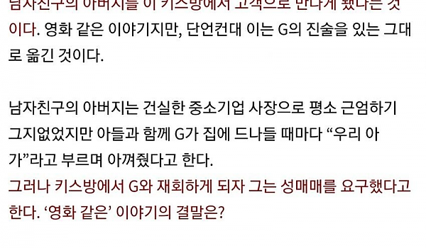 업소에서 일하는데 남친 아버지 옴 +결말