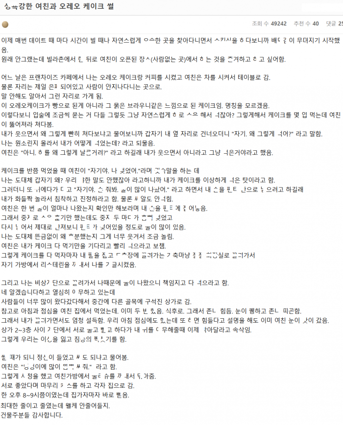 케익 먹는 도중 별안간 ㄲ린 ㅅㅇ 많은 여친한테 ㅁ힌 남ㅈ..r