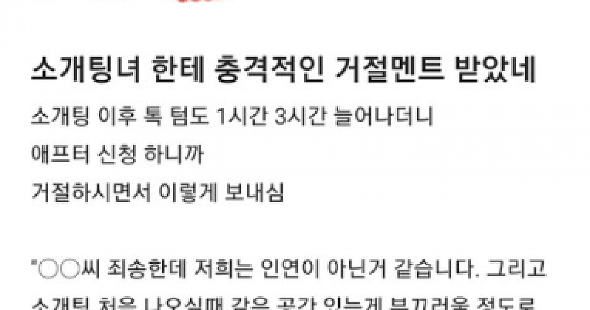소개팅녀한테 충격적인 거절멘트 받았네