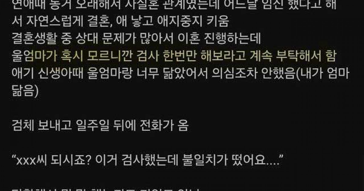 오늘자 따끈따끈한 친자 불일치