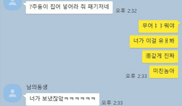 남친에게 보낼걸 실수로 동생에게 보낸 카톡