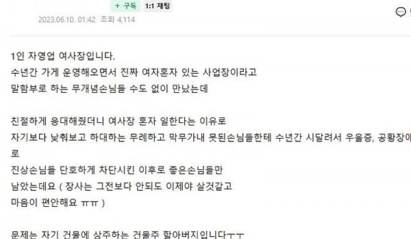 자기한테 성희롱하는 건물주 할아버지때문에 미치겠다는 여사장.jpg