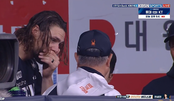 김경문이 다가오자 코를막는 와이스와 통역