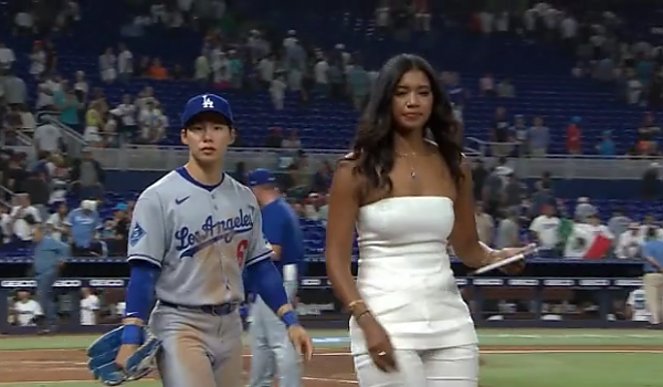 인터뷰하러 가는 김혜성과 미녀 리포터