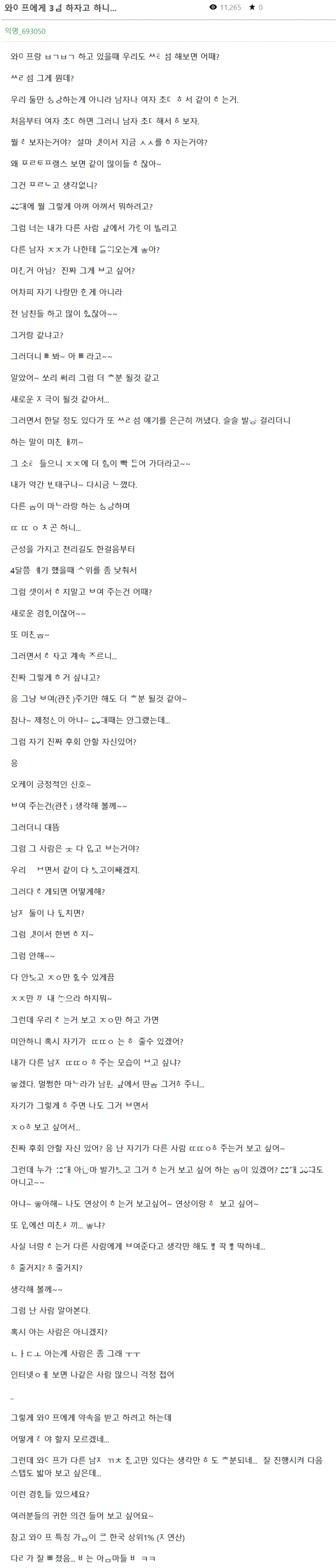 자ㅇ산 ㄱㅅ인 와잎에게 ㅊㄷ남과 쓰ㄹㅆ 하자고 했더니