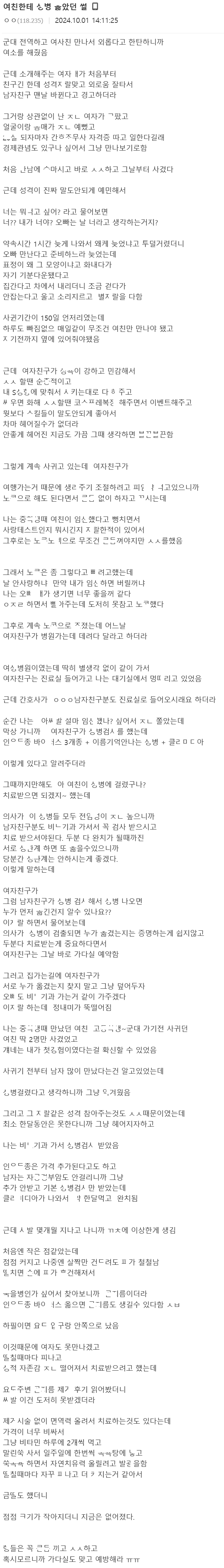 여친과 노ㅋ으로 ㅅㅅ했다가 곤ㅈㄹ 생긴 남ㅈ..r