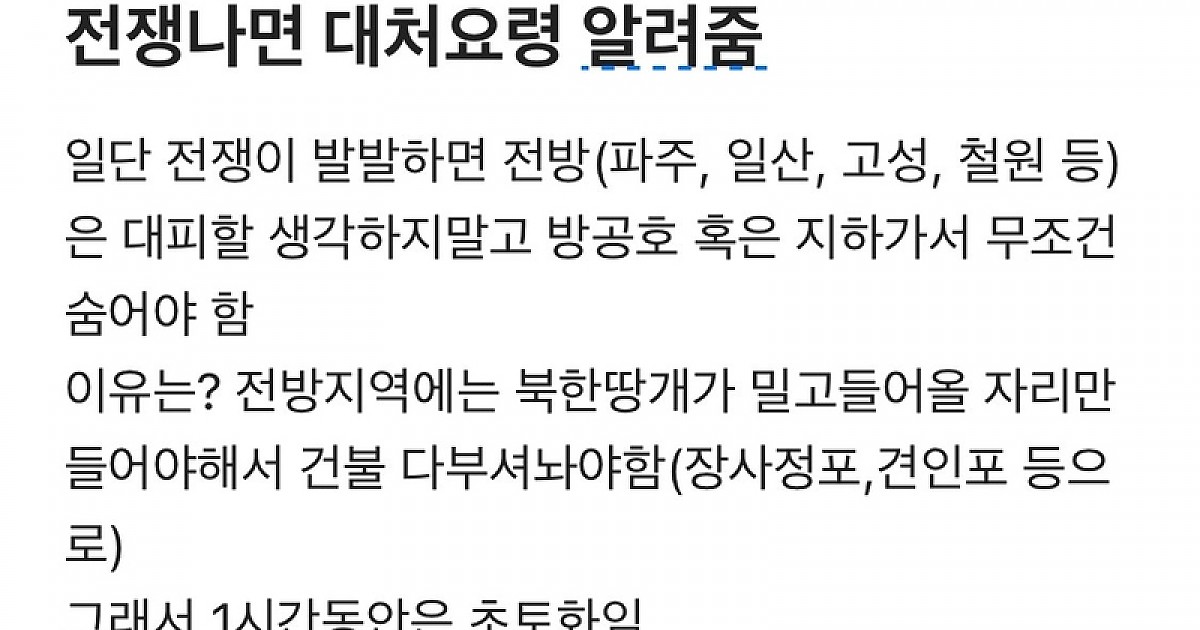 전쟁 났을 때 대처요령 알려주는 국방부 블라인