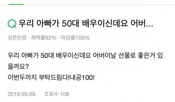 지식인에 글 남긴 50대 배우 자녀