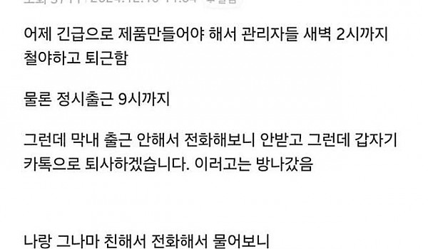 카톡으로 퇴사 통보한 막내