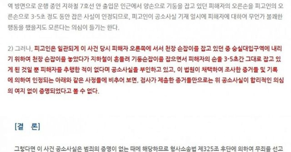지하철에서 실수로 여자 손을 잡아버리면 일어나는일