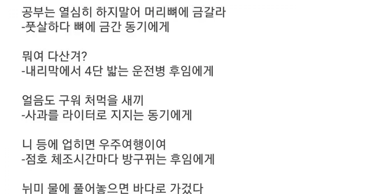 군대시절 충청도출신 선임의 어록