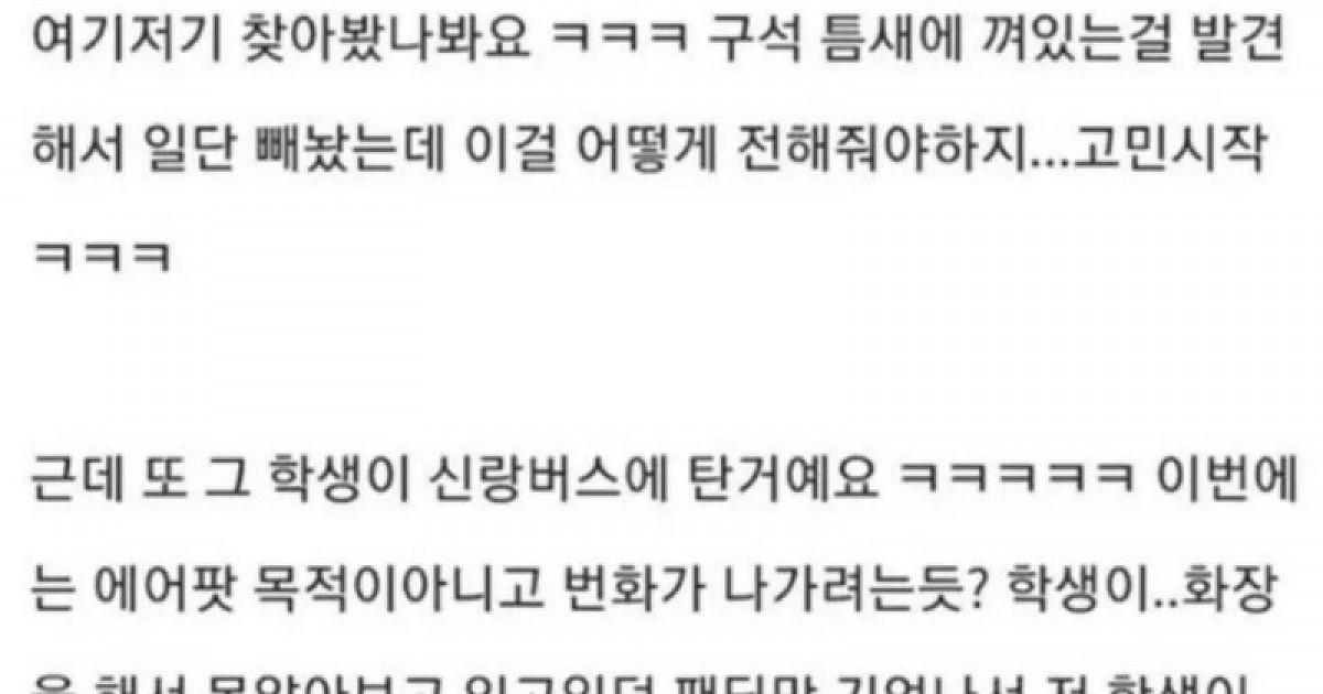 여학생에게 선물 받아온 남편 ㄷㄷ