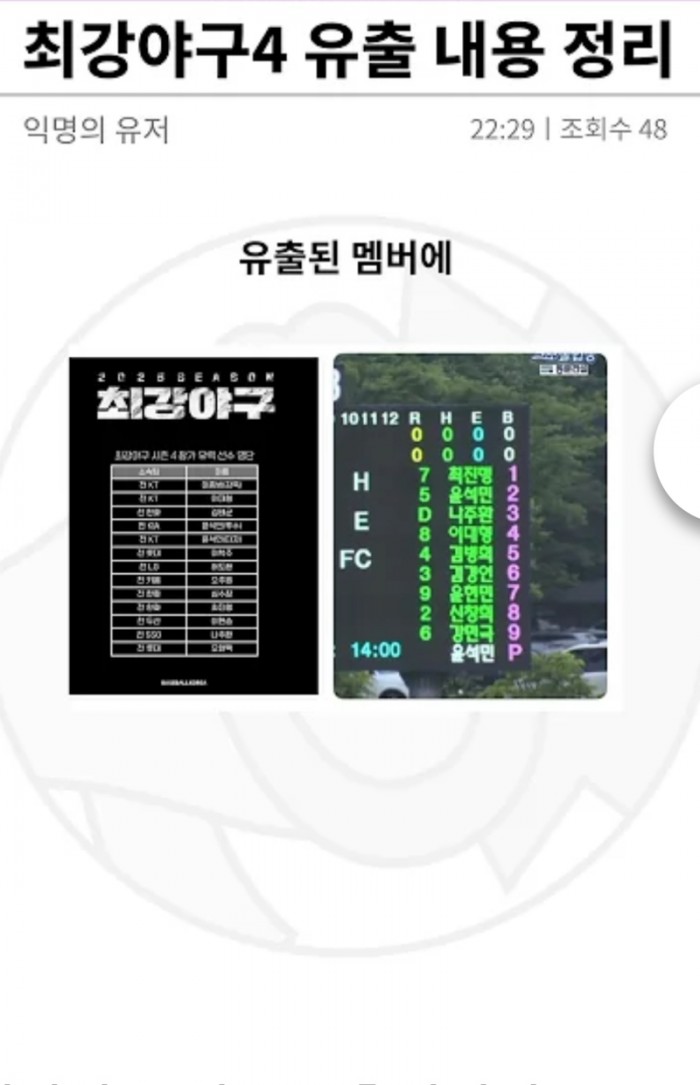 최강야구 팬이였다면 의아할수 밖에 없는 현재 유출된 내용