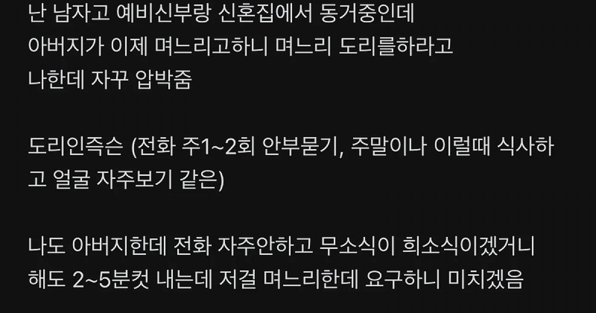 와이프에게 아버지의 전화요구 미치겠다