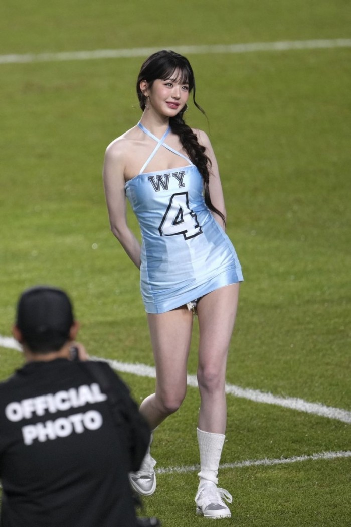 옷이 벗겨질까 보는팬들이 불안했던 오늘 시축한 장원영(+고화질직캠)