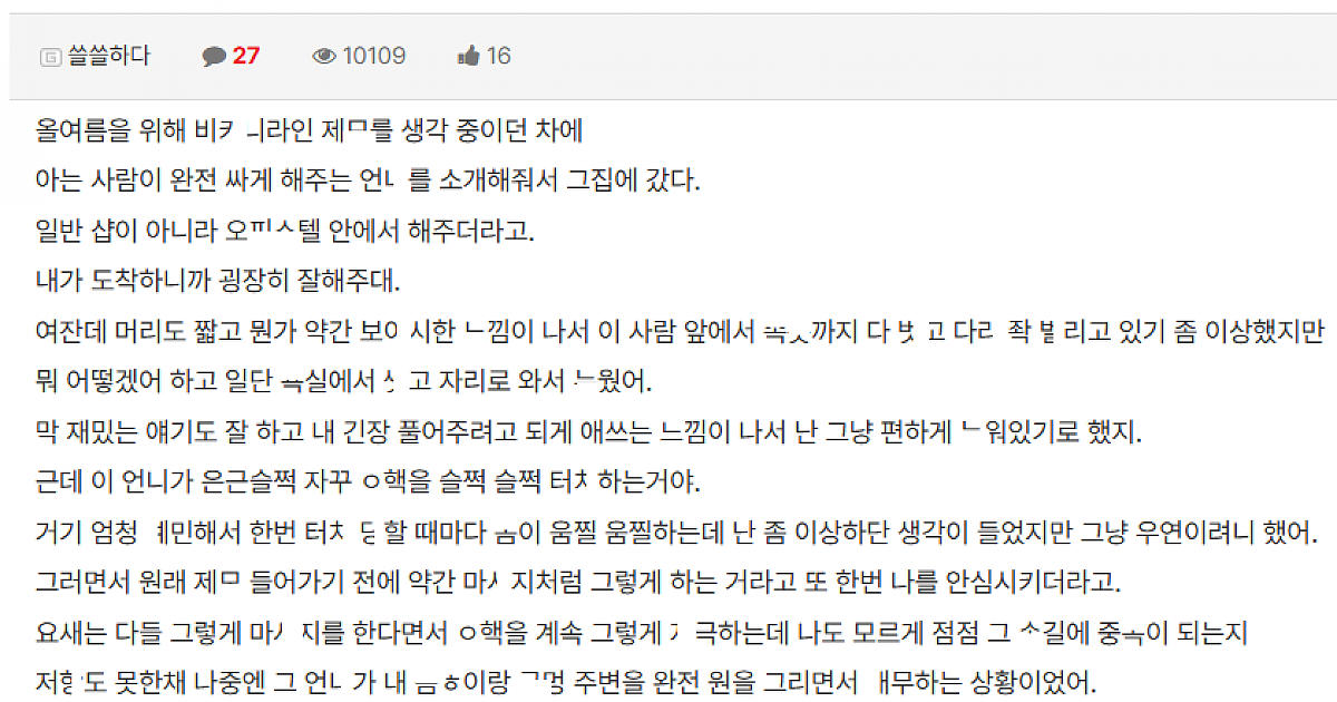 왁ㅅ 하러 갔다가 ㅂㅈ가 너무 이쁘다고 ㅂㅈ ㅃ린 여자