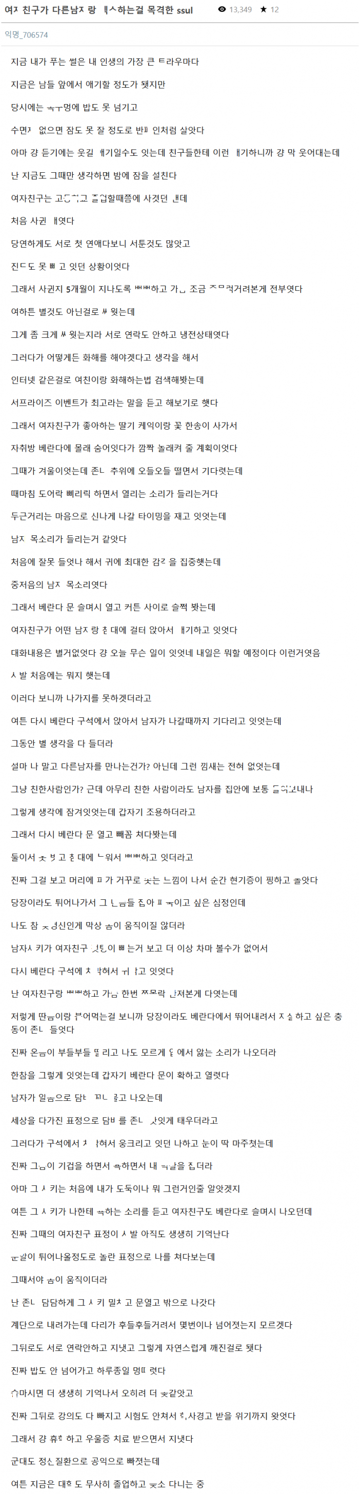 자기 여ㅊ이 딴ㄴ한테 ㄸㅁ히는걸 그대로 보고만 있었던 썰
