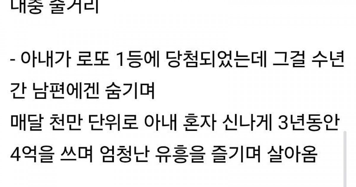 아내가 로또 당첨 사실 숨기고 혼자 돈 쓰다가 발각
