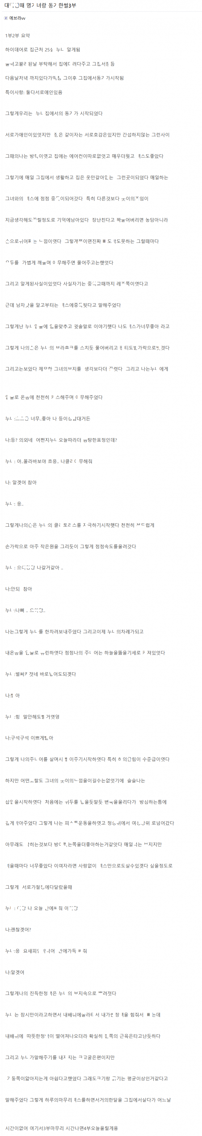 ㅇ대생 ㅂㅈ 명ㄱ녀랑 동ㄱ한 썰(3편)