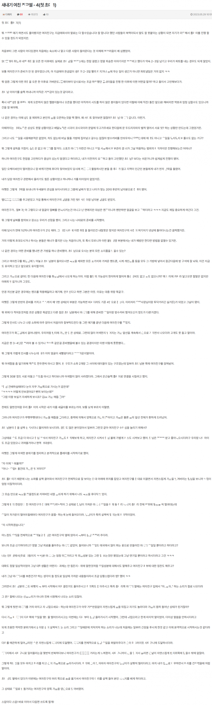 새내기 여친 ㅈ련 시킨 썰 4 (첫 초ㄷ남)
