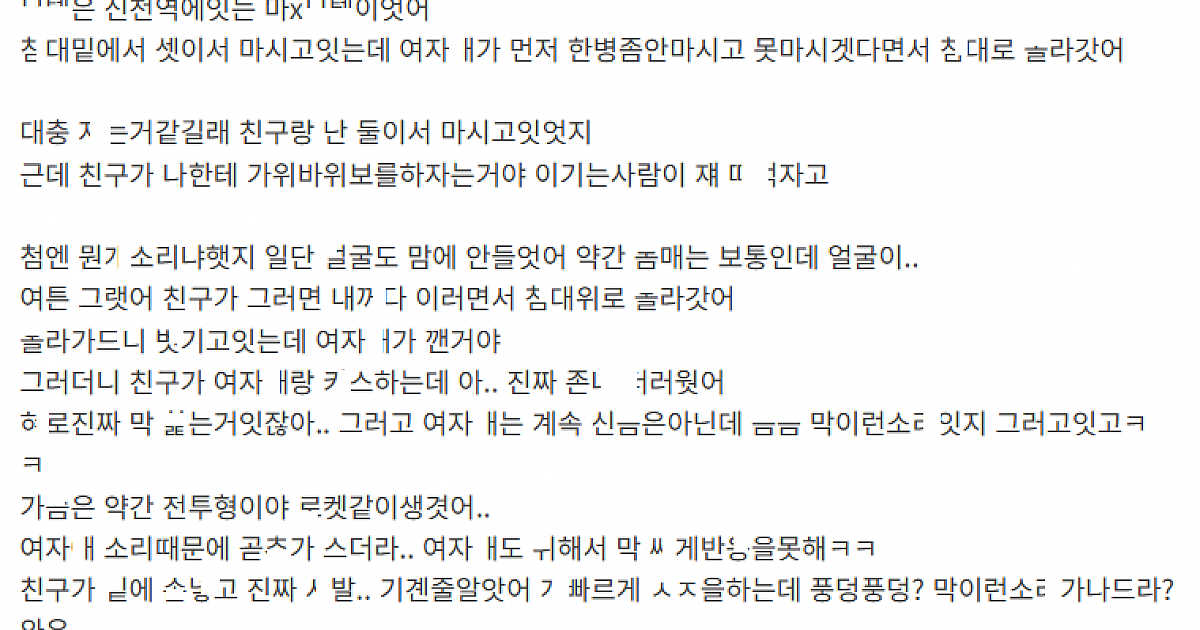 친구랑 모ㅌ 갔다가 친구가 ㅂㅈ에 ㅂ는거 구경한 썰