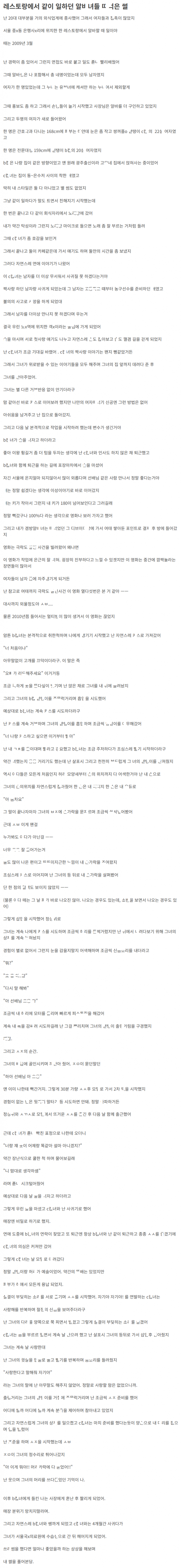 레스토랑에서 같이 일하던 알ㅂ녀들 돌아가며 ㄸㅁ은 이야기