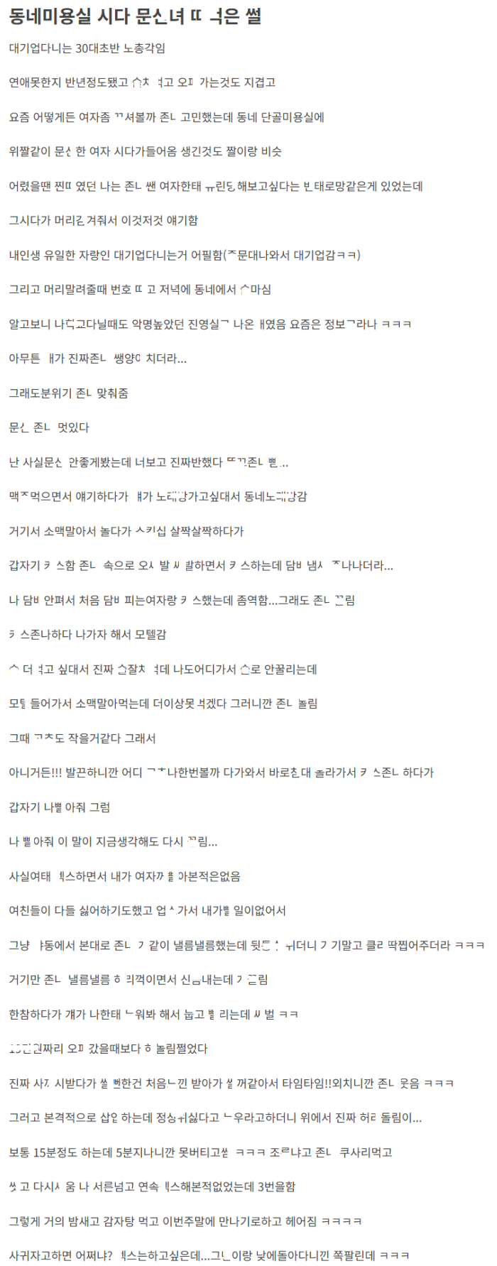 동네 미용실 헤어디자니어 문ㅅ녀 ㄲ셔서 홈ㄹ 친 썰