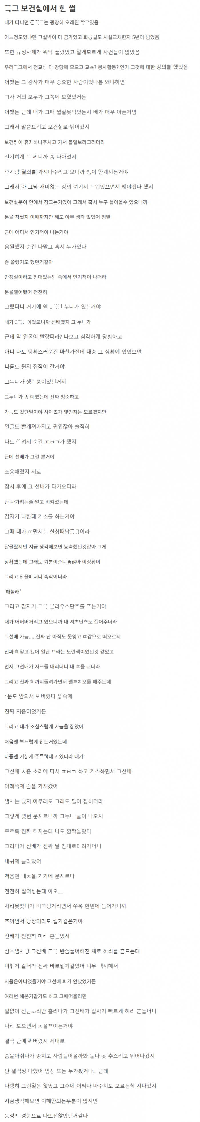 보ㄱ실서 여선배ㄴㄴ한테 ㅈㅆ도 하고 ㅇ다떼인 이야기
