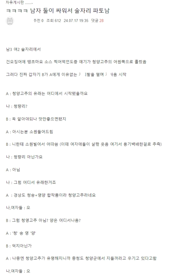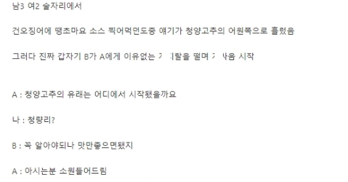 남녀 술자리가 파토 난 이유
