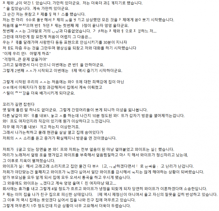 사이 안좋던 ㅊ제와 ㅅㅅ 하다가 와잎한테 걸린 남자