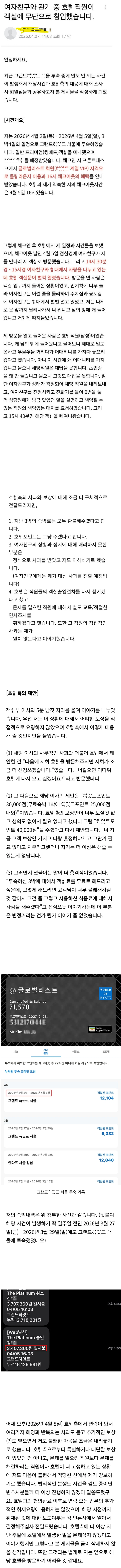 여친과 ㅅㅅ중이었는데 호ㅌ직원이 무단으로 객실에 침범