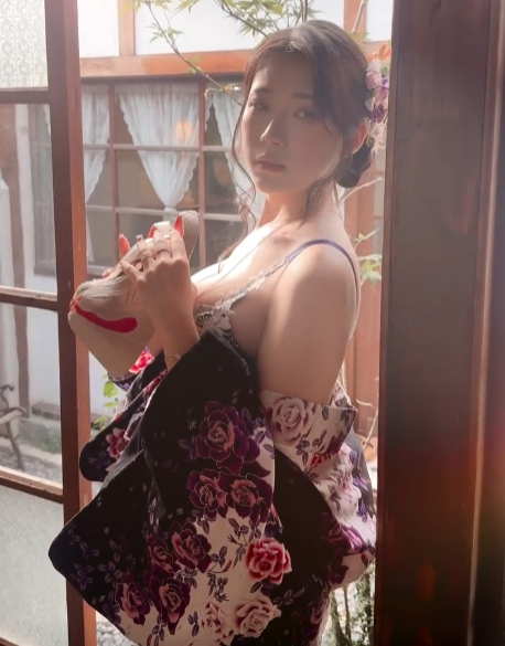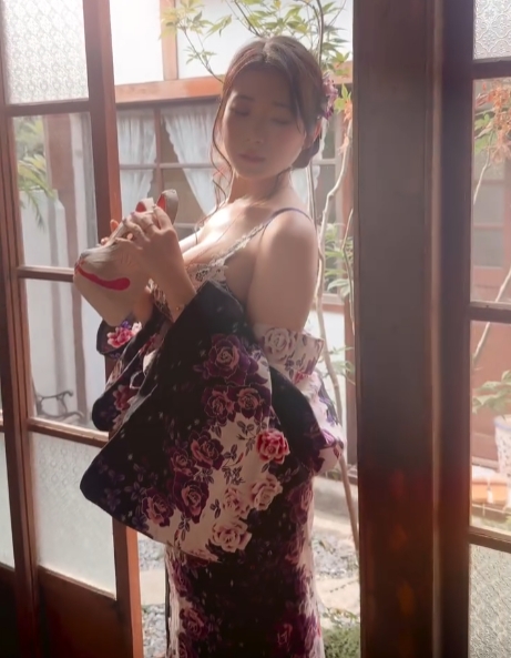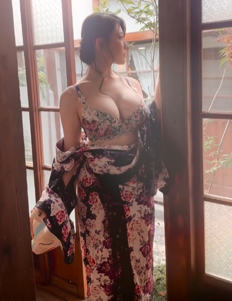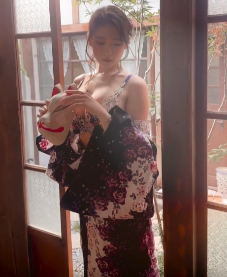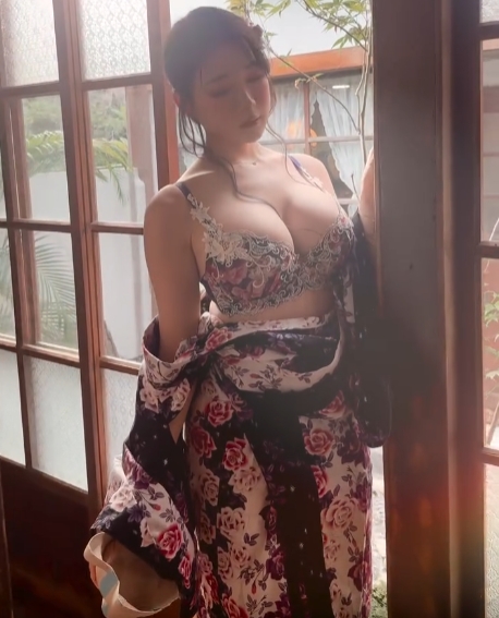기모노 흘러내렸는데 가리지 않는 누나