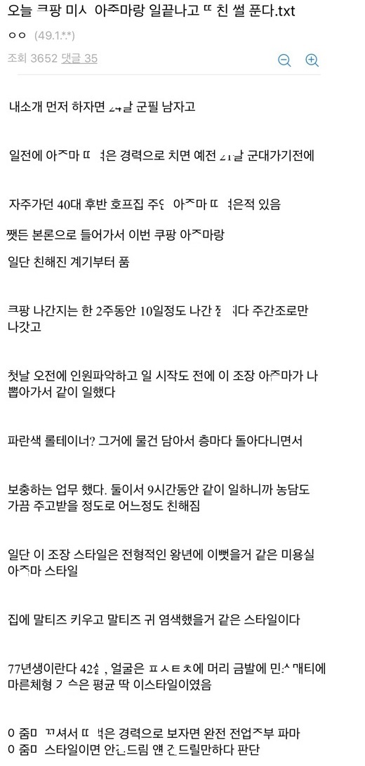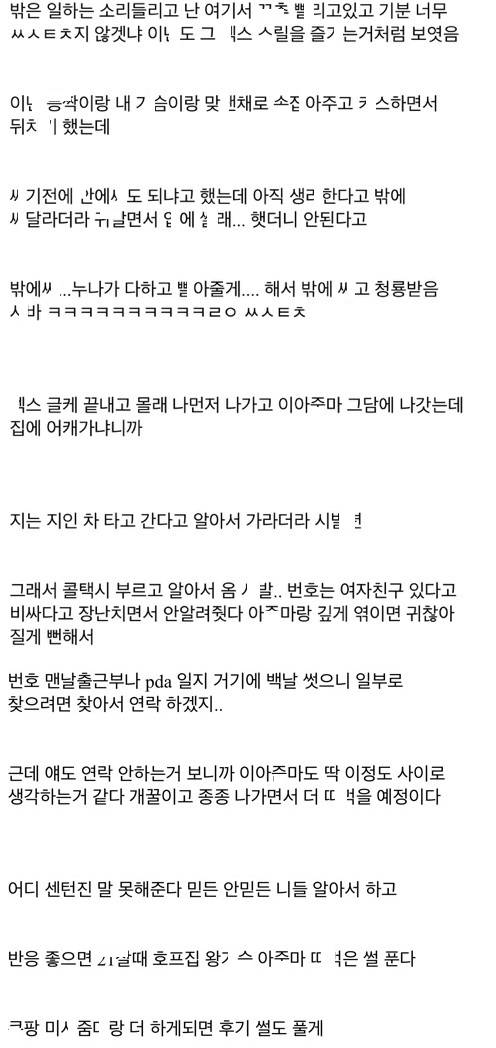 쿠ㅍ에서 일할때 미ㅅ 아ㅈ마랑 샤ㅇ장에서 ㅅㅅ한 썰