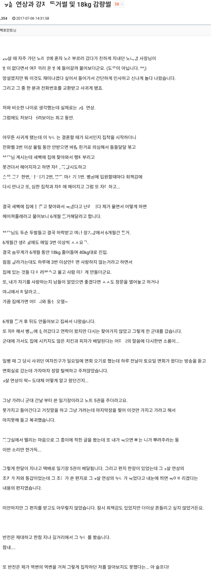 연상녀와 강ㅈ 동ㄱ 하다가 18kg 감량된 썰