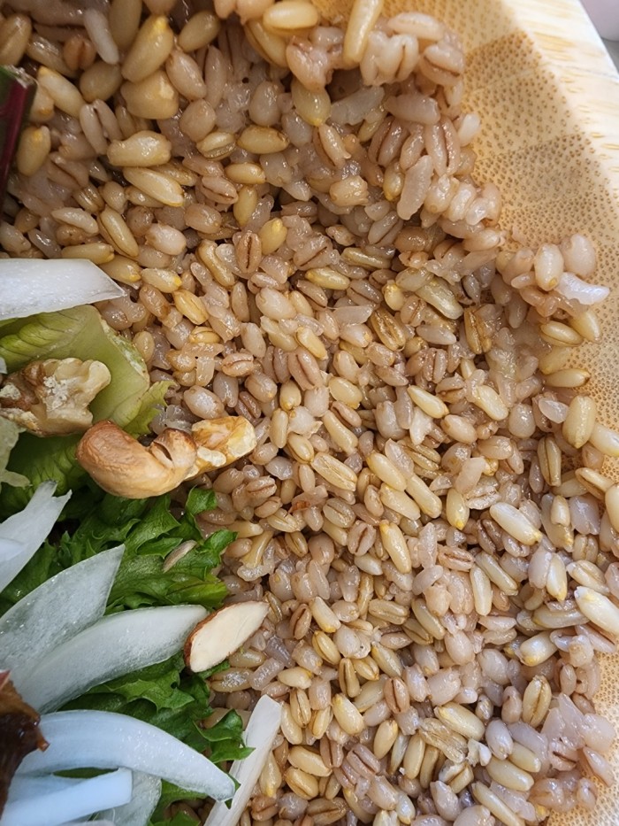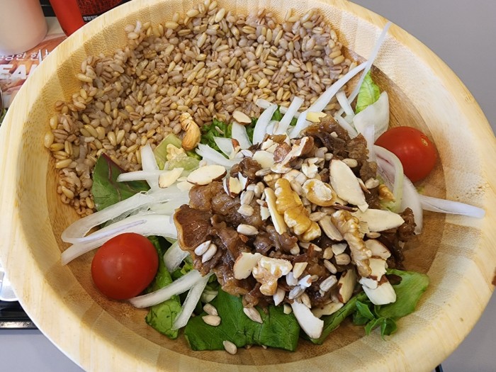 풍미가득한 우삼겹에 고소한 견과류,야채들...거기에 곡물이 어찌 그리 맛도 좋은지요