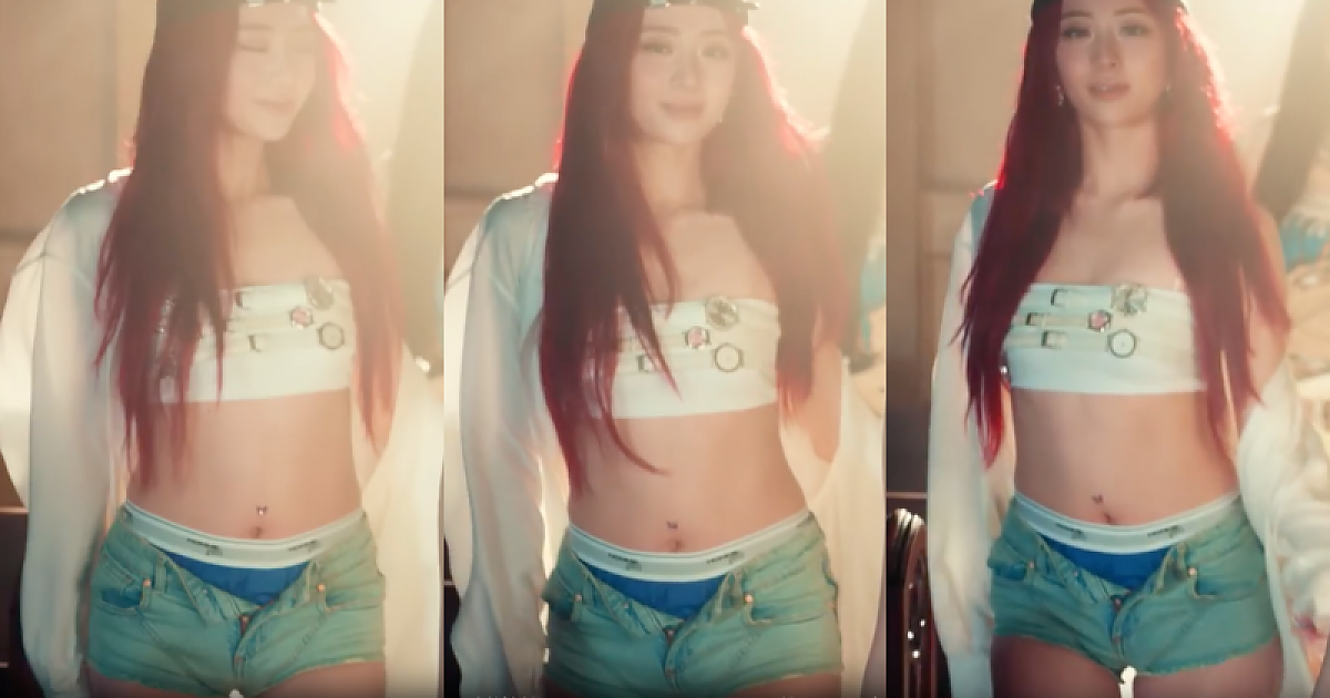 [르세라핌 허윤진] 짧은 의상 컨셉으로 뮤비 촬영한 허윤진의 피지컬(영상)