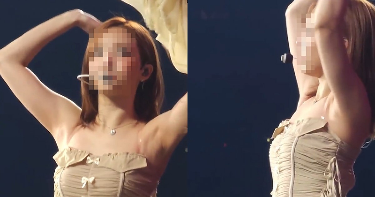 리본 달린 아이보리색 오프숄더 입고 콘서트에서 역대급 무대 선보이는 아이돌..ㄷㄷ