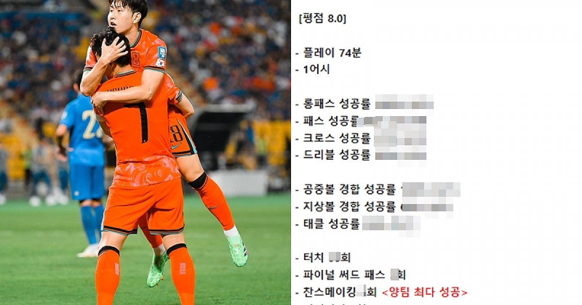 오랜만에 작은 형으로서의 역할을 톡톡하게 수행했던 이강인의 화려한 스텟 ㄷㄷㄷㄷㄷㄷㄷ