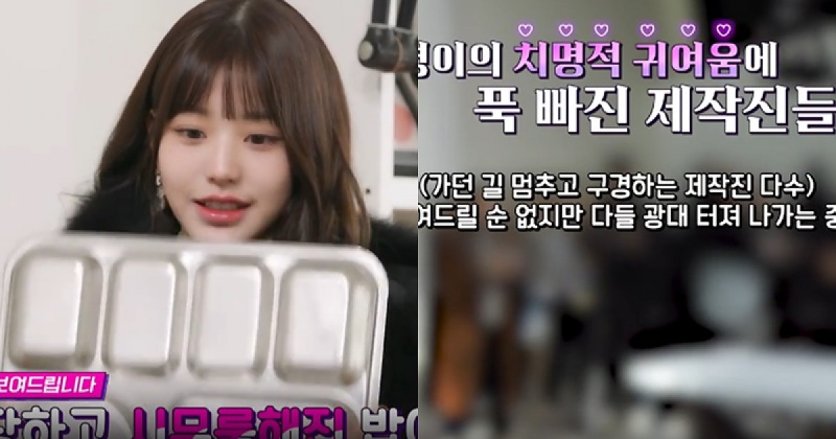 제작진들도 지나가다가 멈춰서서 웃음벨을 터트렸다는 치명적인 매력의 장원영ㅋㅋㅋㅋㅋ.gif