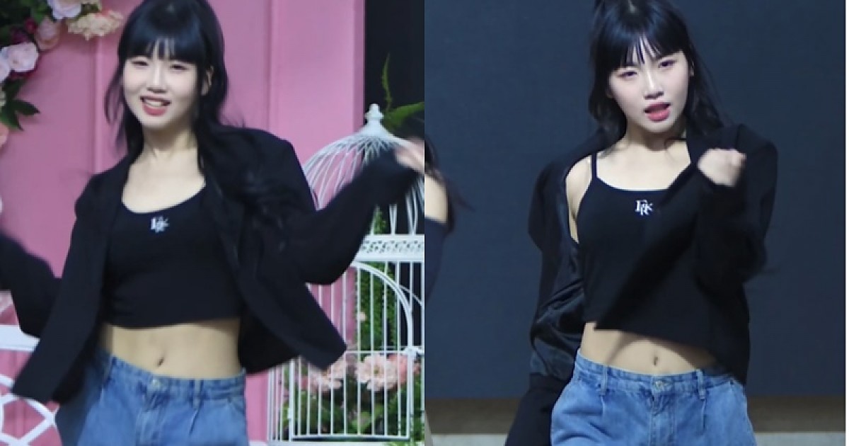 헐렁한 블랙 자켓속에 숨겨져있던 라인을 뽐내는 트라이비의 '소은'.gif